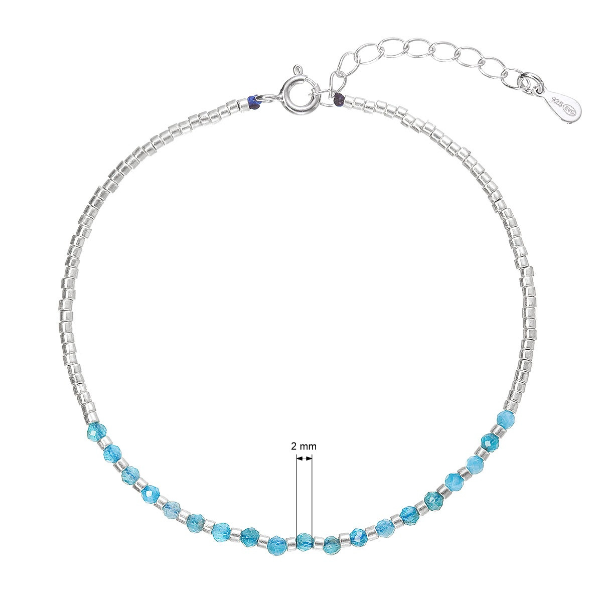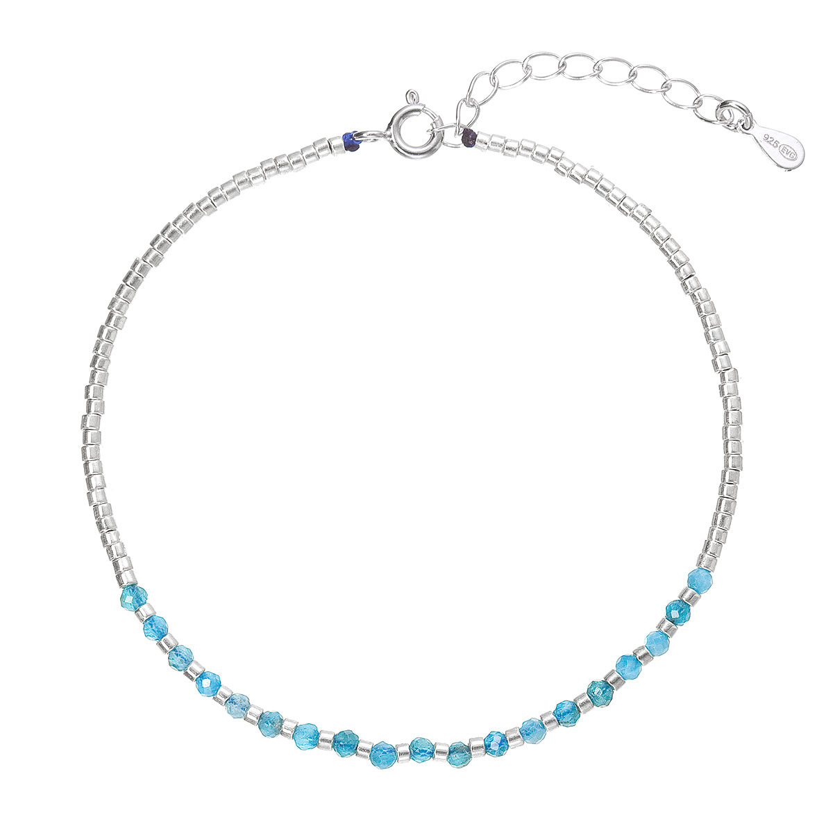 Tento jemný náramek je vyroben z kvalitního stříbra a zdoben korálky z pravého apatitu v sytě modré barvě. Skládá se z drobných stříbrných korálků, které tvoří většinu náramku, a z části z drobných modrých kamínků apatitu, které mu dodávají živý a svěží vzhled.