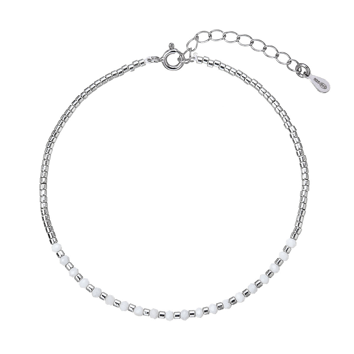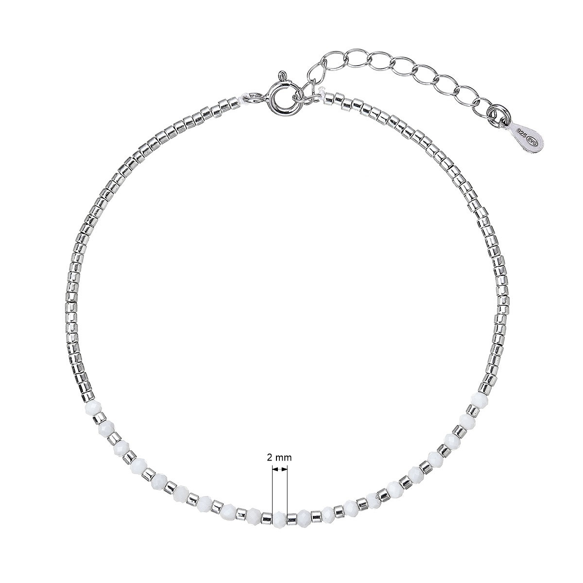 Tento jemný náramek je vyroben z kvalitního stříbra a zdoben pravými howlity. Skládá se z drobounkých stříbrných korálků, které tvoří větší část náramku. Elegantní lehká čistá krása stříbrných korálků s bílými howlity.