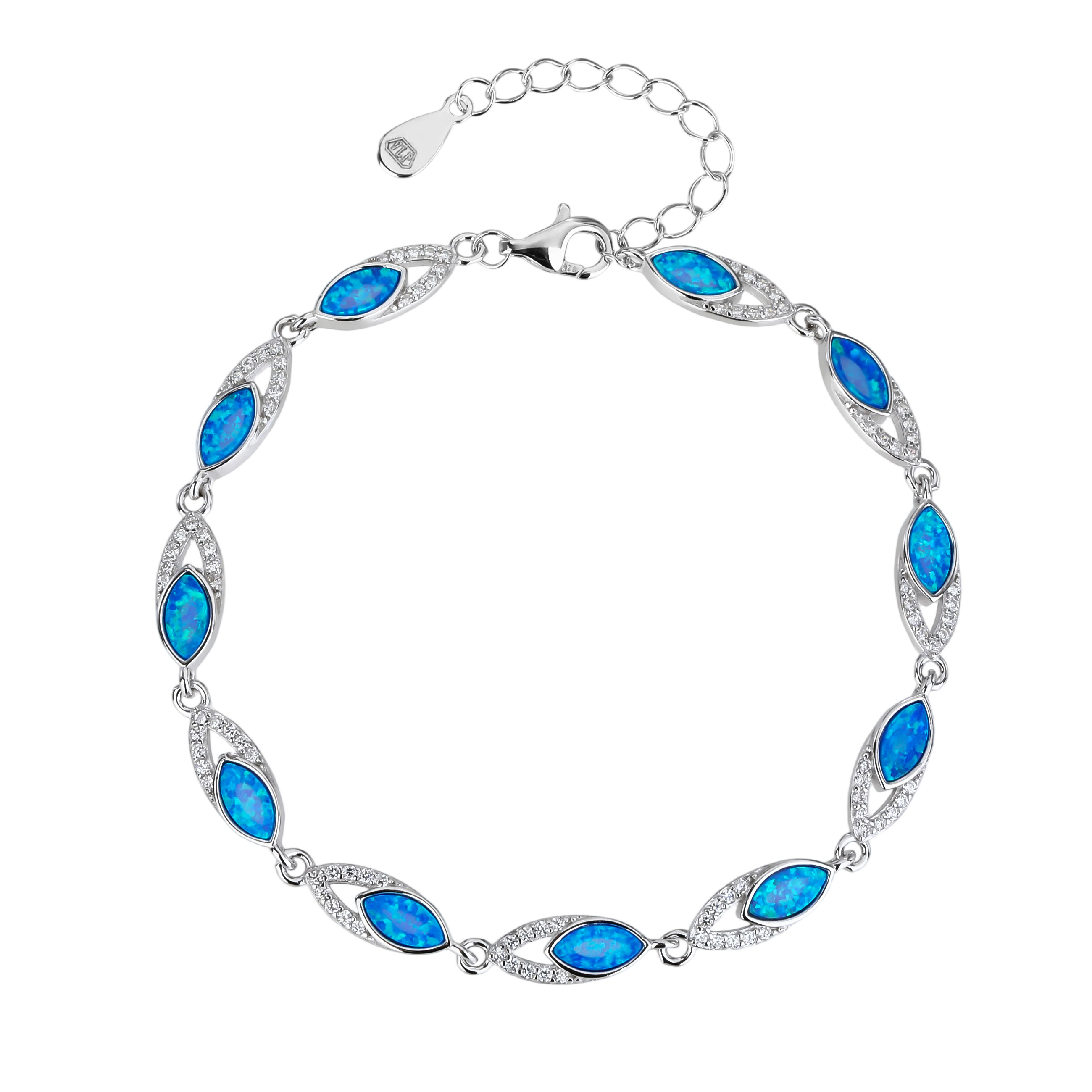 Dámský stříbrný náramek dekorovaný syntetickými modrými opály a zirkony