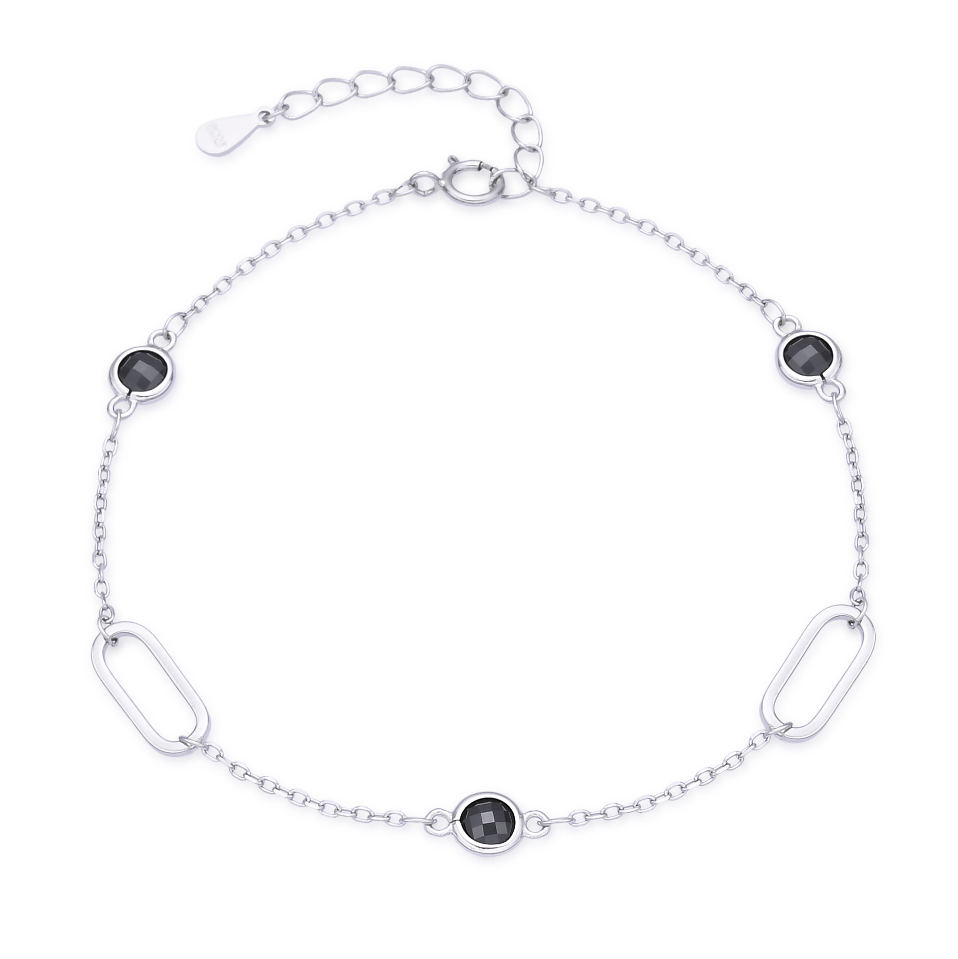 Stříbrný náramek s oválky a černými kameny