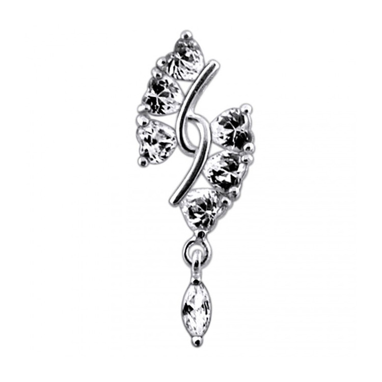 Stříbrný piercing do pupíku, čiré zirkony