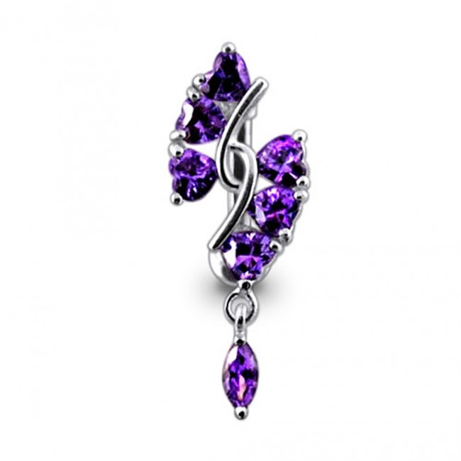 Stříbrný piercing do pupíku, tmavě fialové zirkony