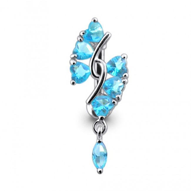 Stříbrný piercing do pupíku, tyrkysové zirkony