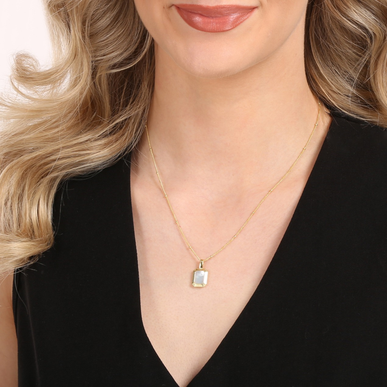 Stříbrný pozlacený náhrdelník se syntetickou  perletí a černým achátem nabízí jedinečný oboustranný design, který vám umožní měnit vzhled šperku podle nálady či příležitosti. Na jedné straně se nachází nádherná syntetická bílá perleť, která dodává šperku jemný lesk a sofistikovanost, zatímco druhá strana ukrývá fascinující syntetický černý achát, jenž přináší tajemnou a elegantní eleganci.