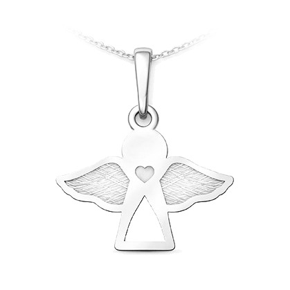 Jemný stříbrný přívěsek ve tvaru anděla zaujme jednoduchým a něžným designem. Křídla zdobí jemná struktura, která šperku dodává zajímavý detail, zatímco malé srdíčko uprostřed symbolizuje lásku, péči a ochranu.