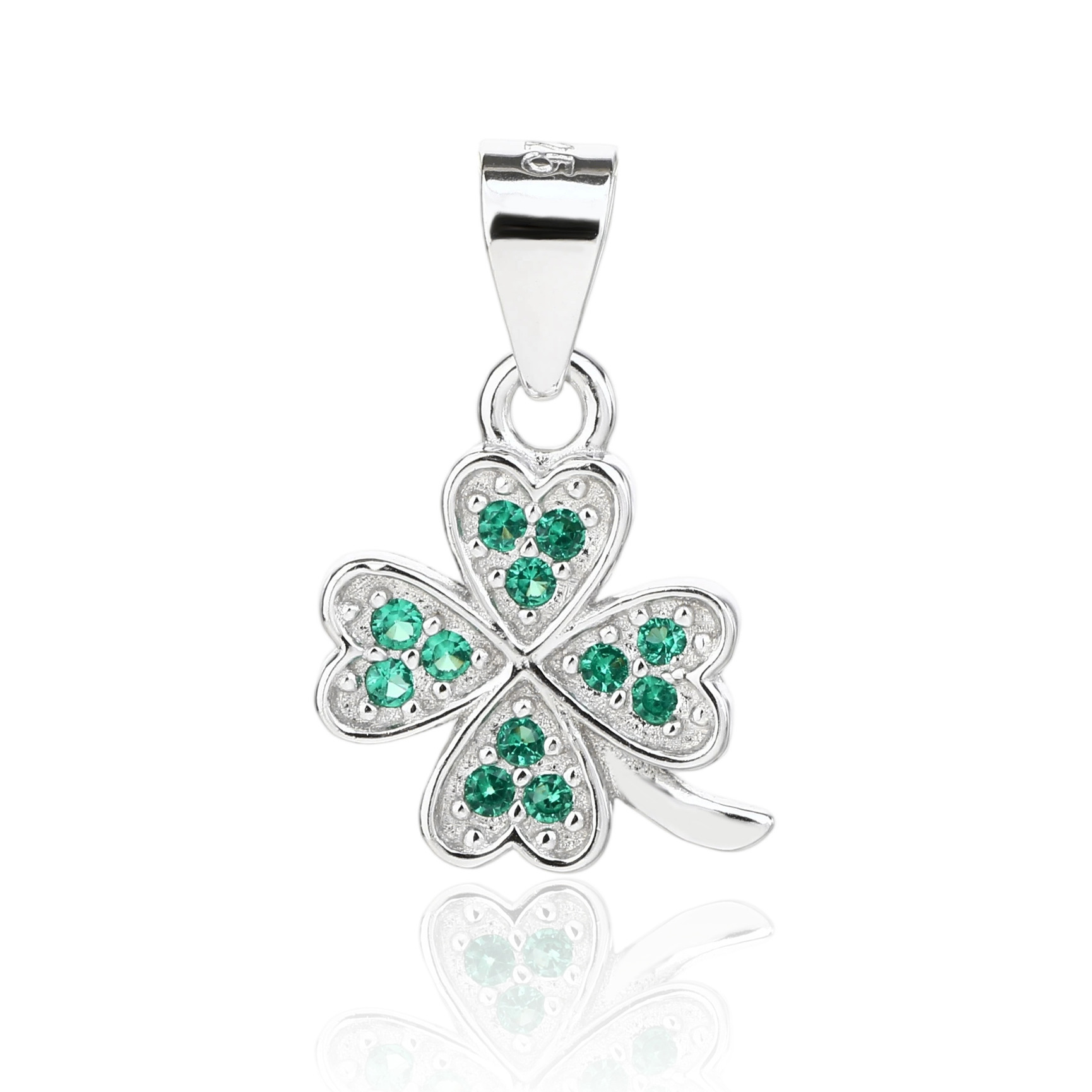 Stříbrný přívěsek čtyřlístek dekorovaný zelenými zirkony