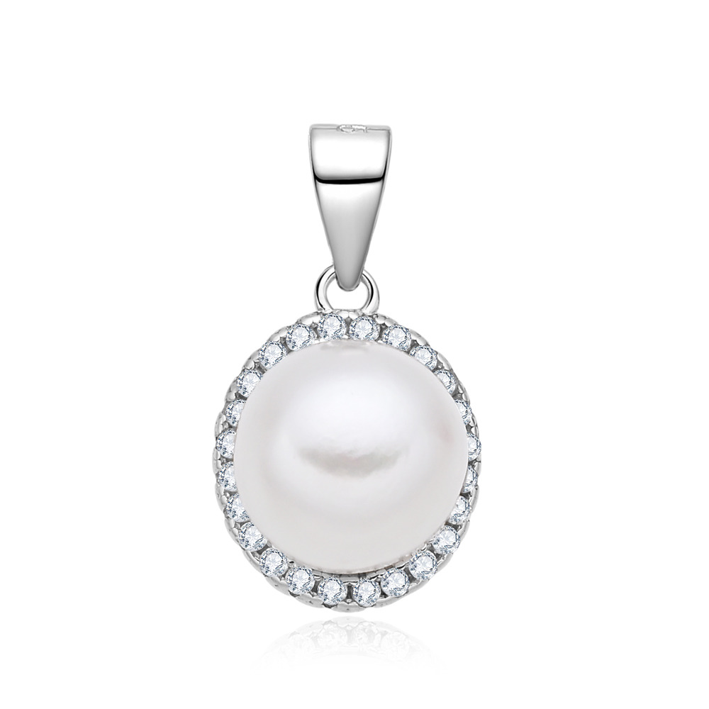 Stříbrný přívěsek s perlou a zirkony