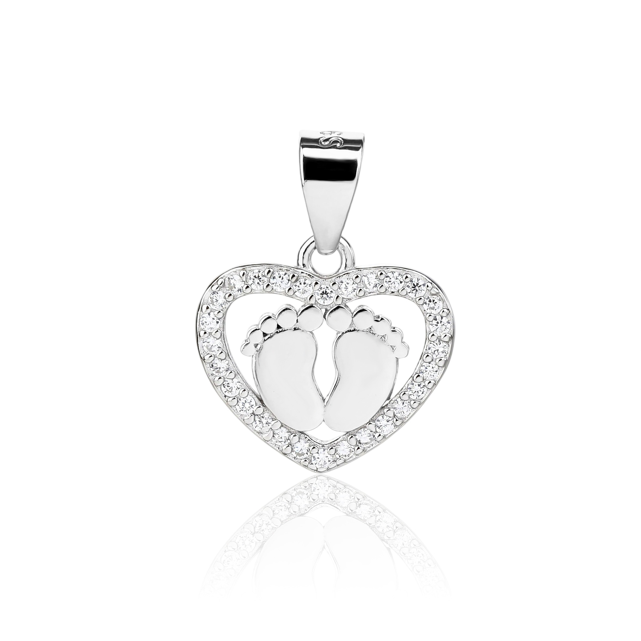 Stříbrný přívěsek ve tvaru srdíčka zdobeného dětskými nožičkami