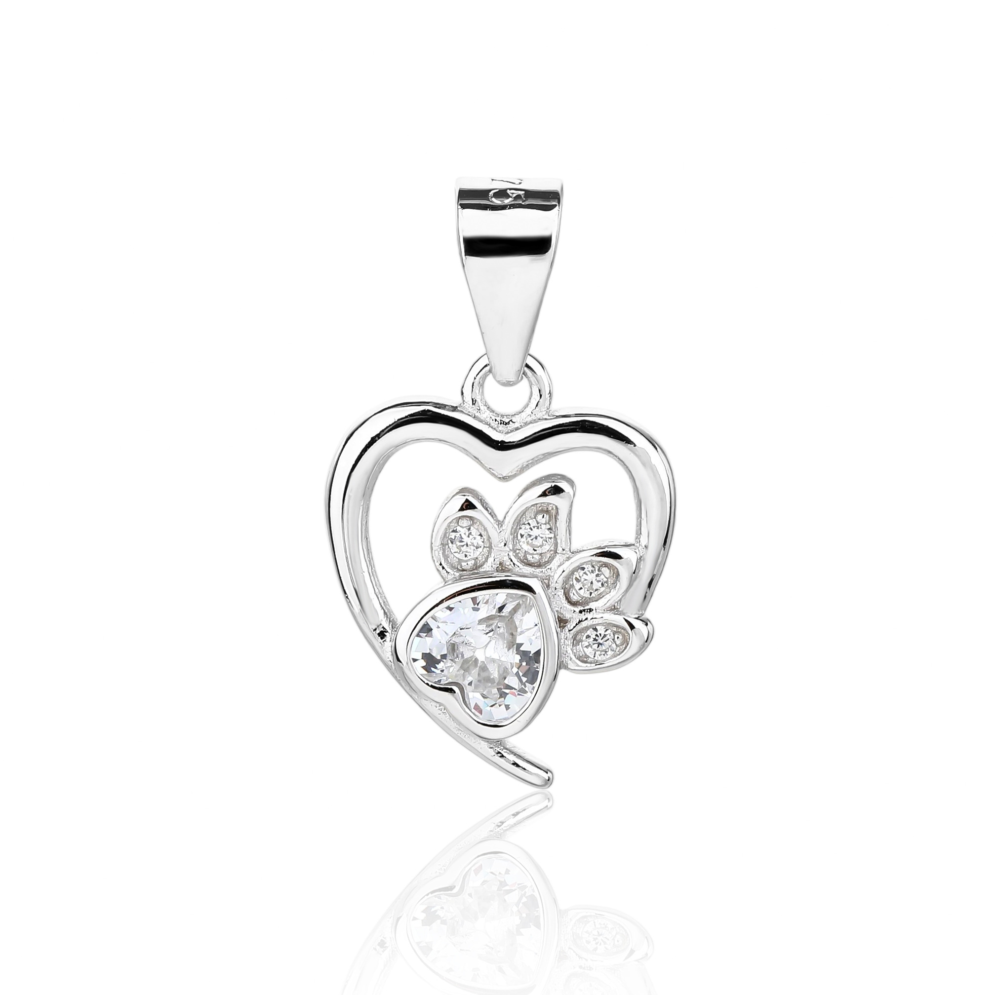 Stříbrný přívěsek ve tvaru srdíčka zdobeného sybolem psí tlapky