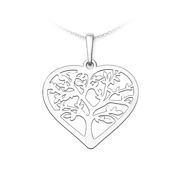 Elegantní stříbrný přívěsek spojuje symbol stromu života s jemným tvarem srdce. Propletené větve a kořeny vytvářejí harmonický motiv, který představuje spojení, sílu a životní energii. Detailní prořezávaný design dodává šperku lehkost a nadčasový vzhled.