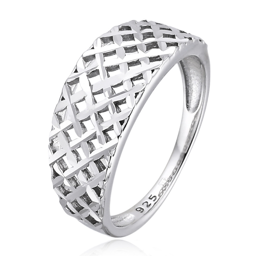 Zajímavě řešený stříbrný prsten s decentním vybrušovaný dekorem "květ života"