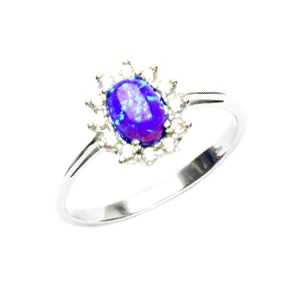 Stříbrný prsten zdobený fialovým opálem a zirkony