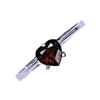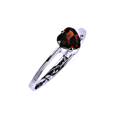 Stříbrný prsten zdobený přírodním granátem ve tvaru srdíčka