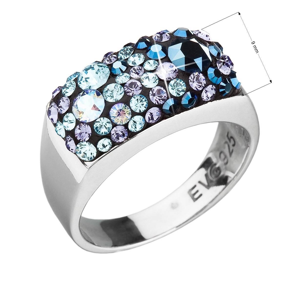 Stříbrný prsten s mdrými kameny Crystals from Swarovski®