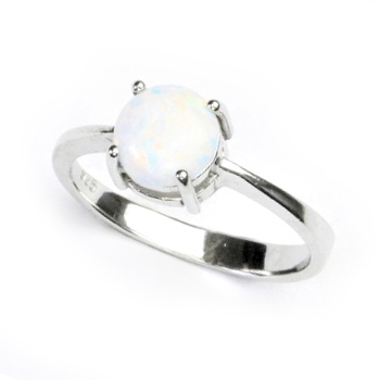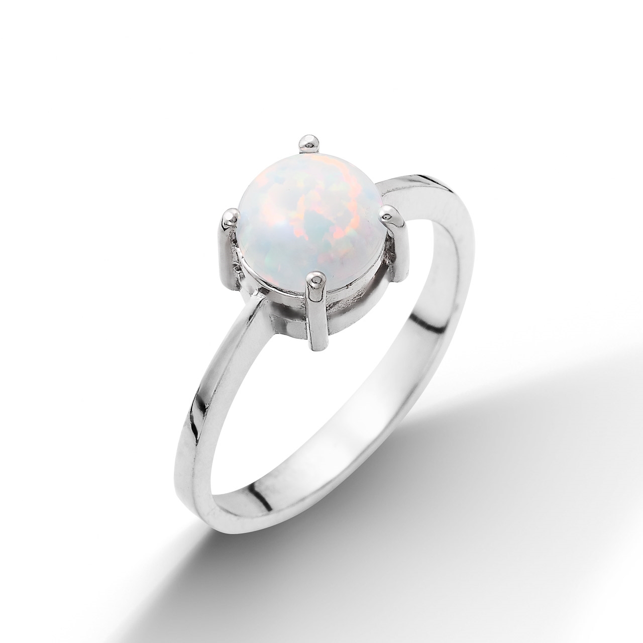 Stříbrný prsten zdobený syntetickým opálem bílé barvy