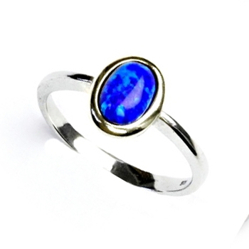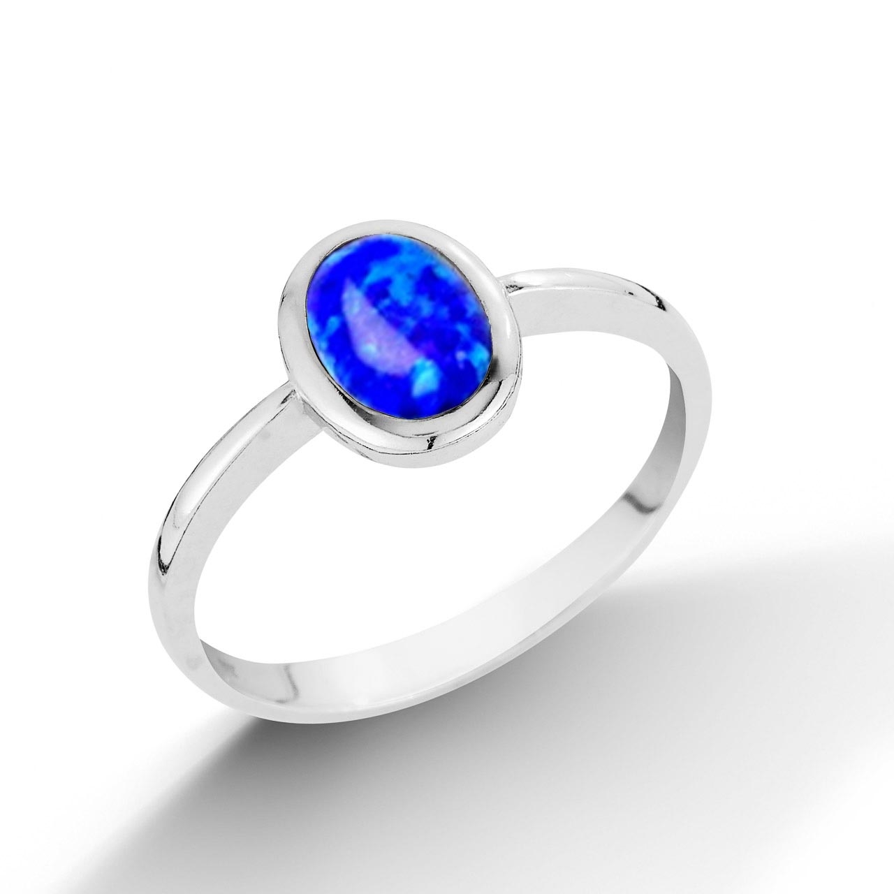 Stříbrný prsten zdobený syntetickým opálem sytě modré barvy