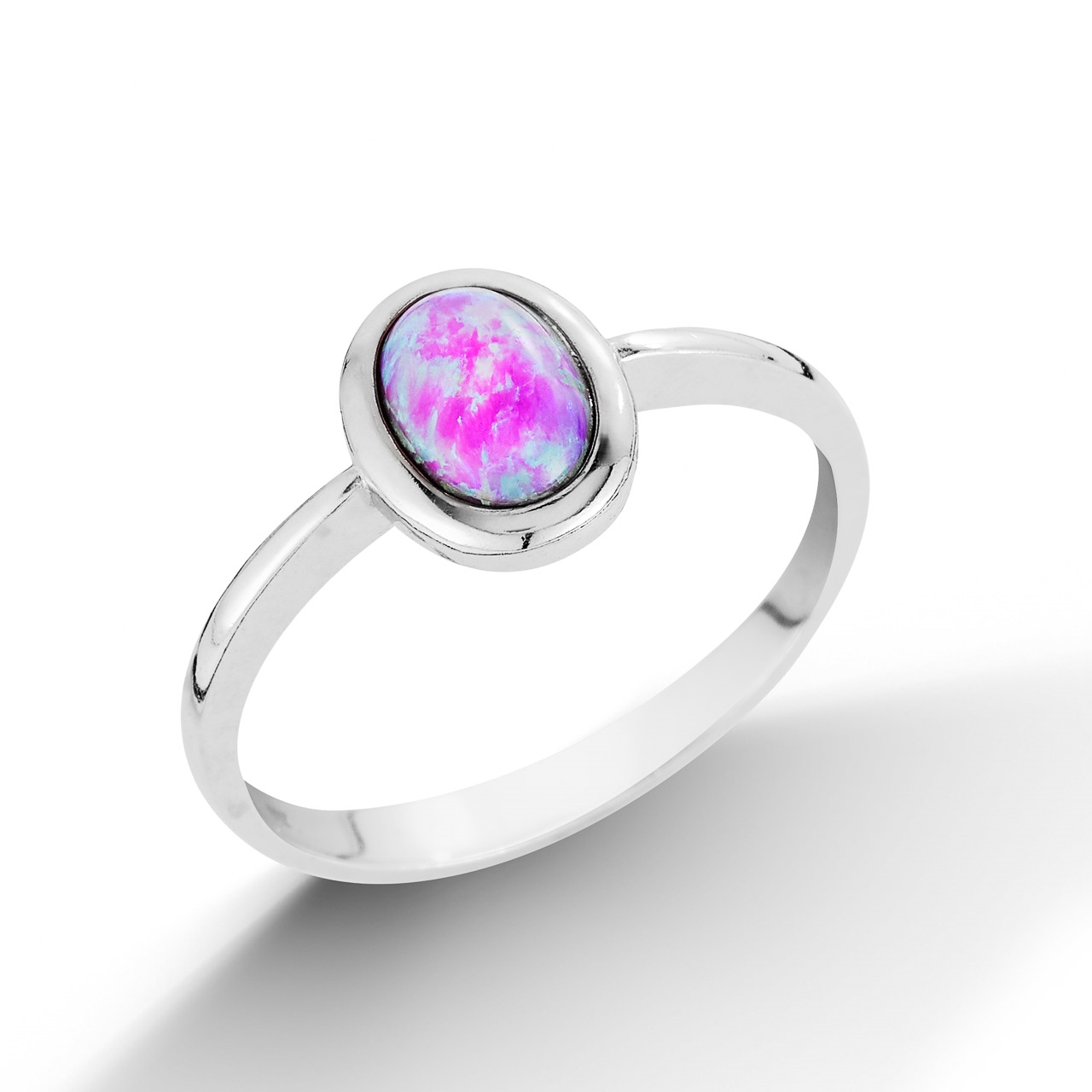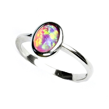Stříbrný prsten zdobený syntetickým opálem růžové barvy