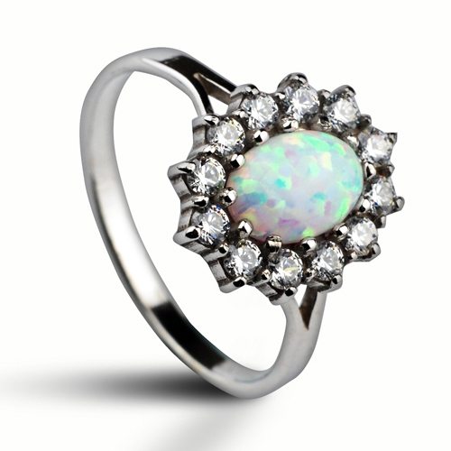 Stříbrný prsten zdobený bílým opálem a zirkony