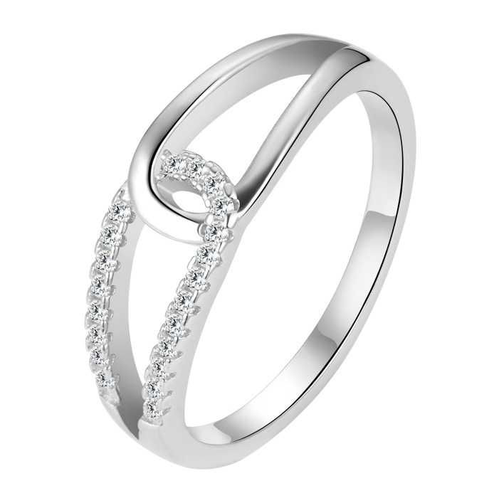 Stříbrný prsten dekorovnými čirými zirkony