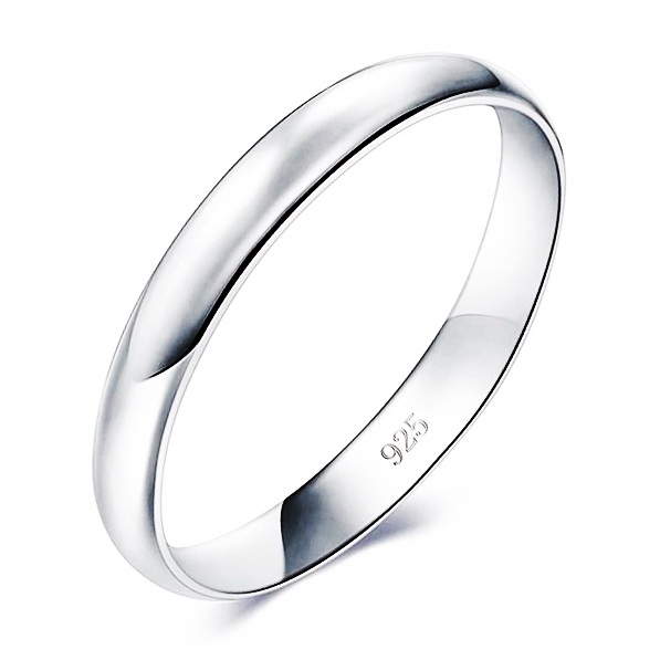 Jednoduchý, hladký stříbrný snubní prsten šíře 3 mm