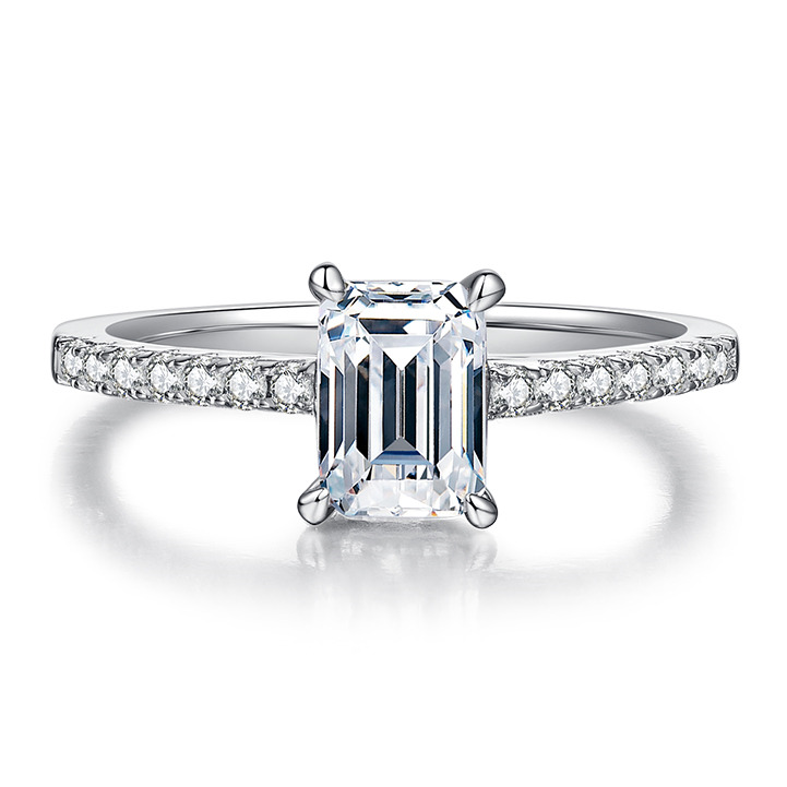 Luxusní stříbrný zásnubní prsten zdobený překrásným obdélným MOISSANITEM