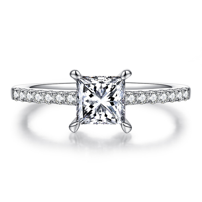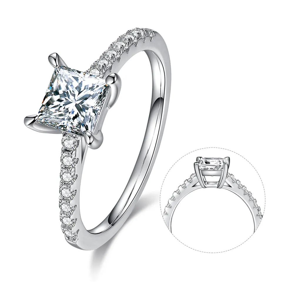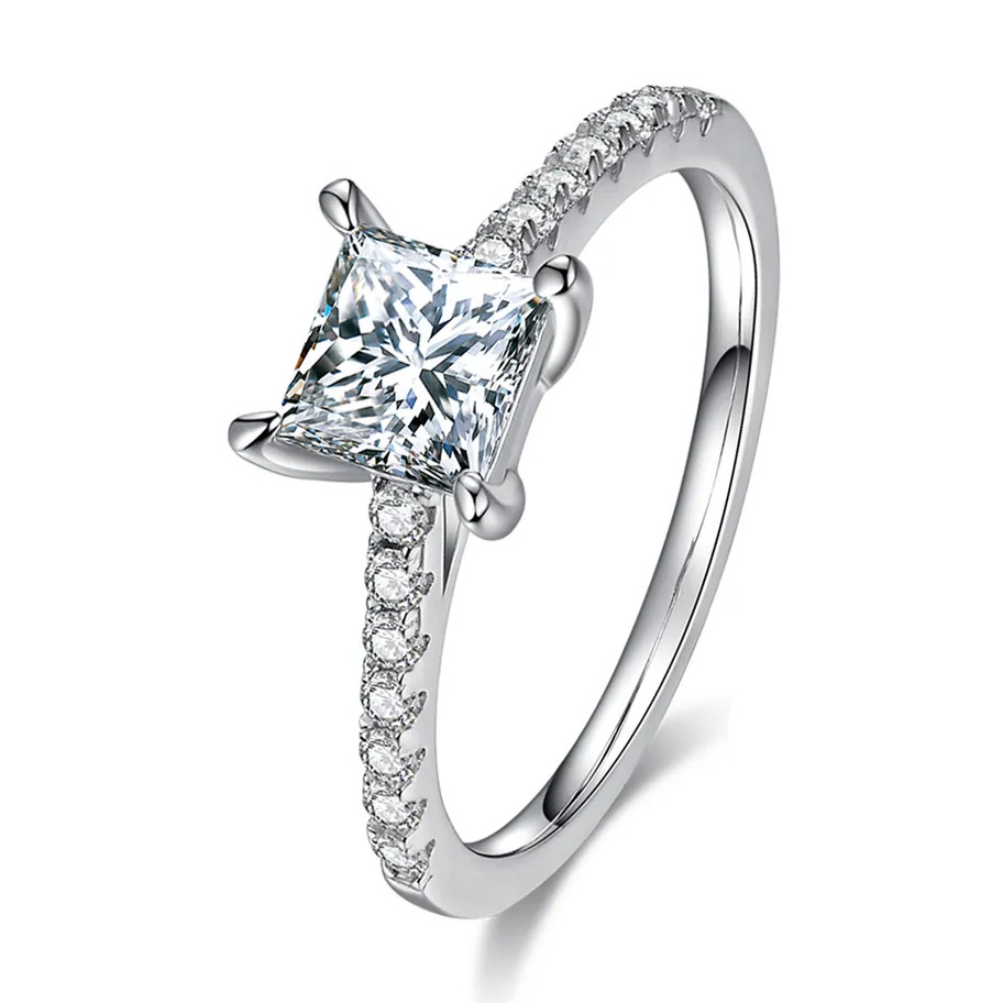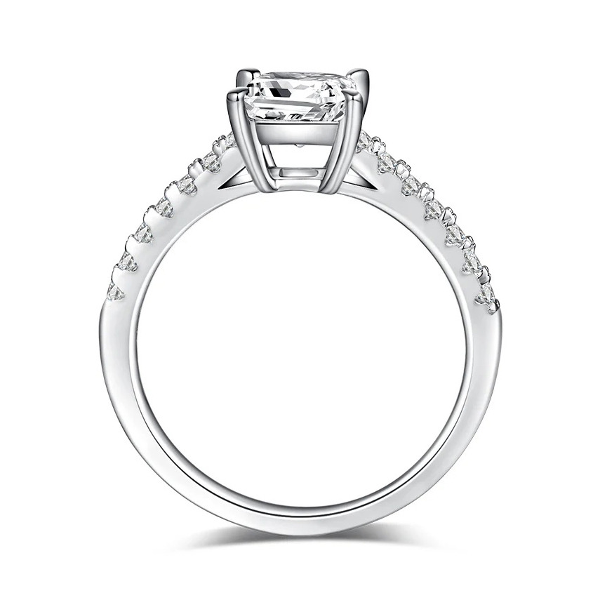 Luxusní stříbrný zásnubní prsten zdobený překrásným čtvercovým MOISSANITEM