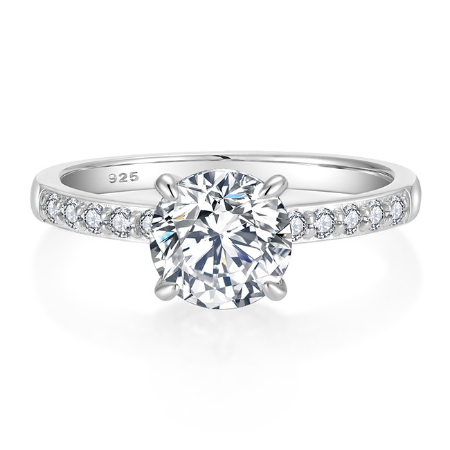 Luxusní stříbrný zásnubní prsten zdobený překrásným kulatým MOISSANITEM