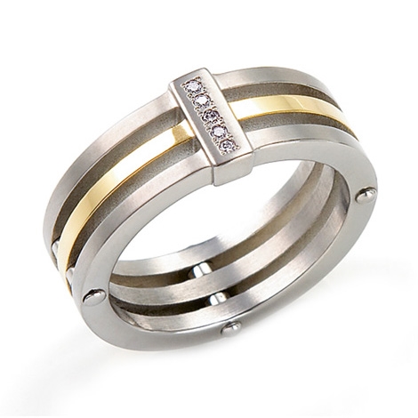Titanový prsten Boccia Titanium zdobený diamanty a zlacenou povrchovou úpravou