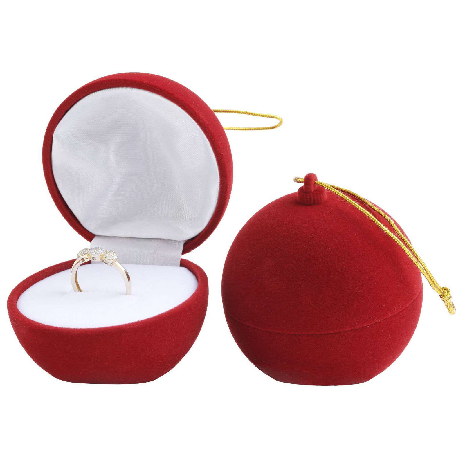 Semišová vánoční dárková krabička ve tvaru ozdobičky - kuličky na stromek červené barvy