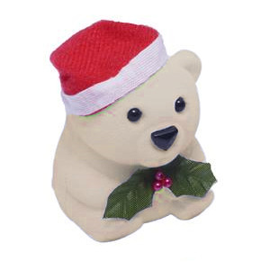 Semišová vánoční dárková krabička ve tvaru vánočního medvídka
