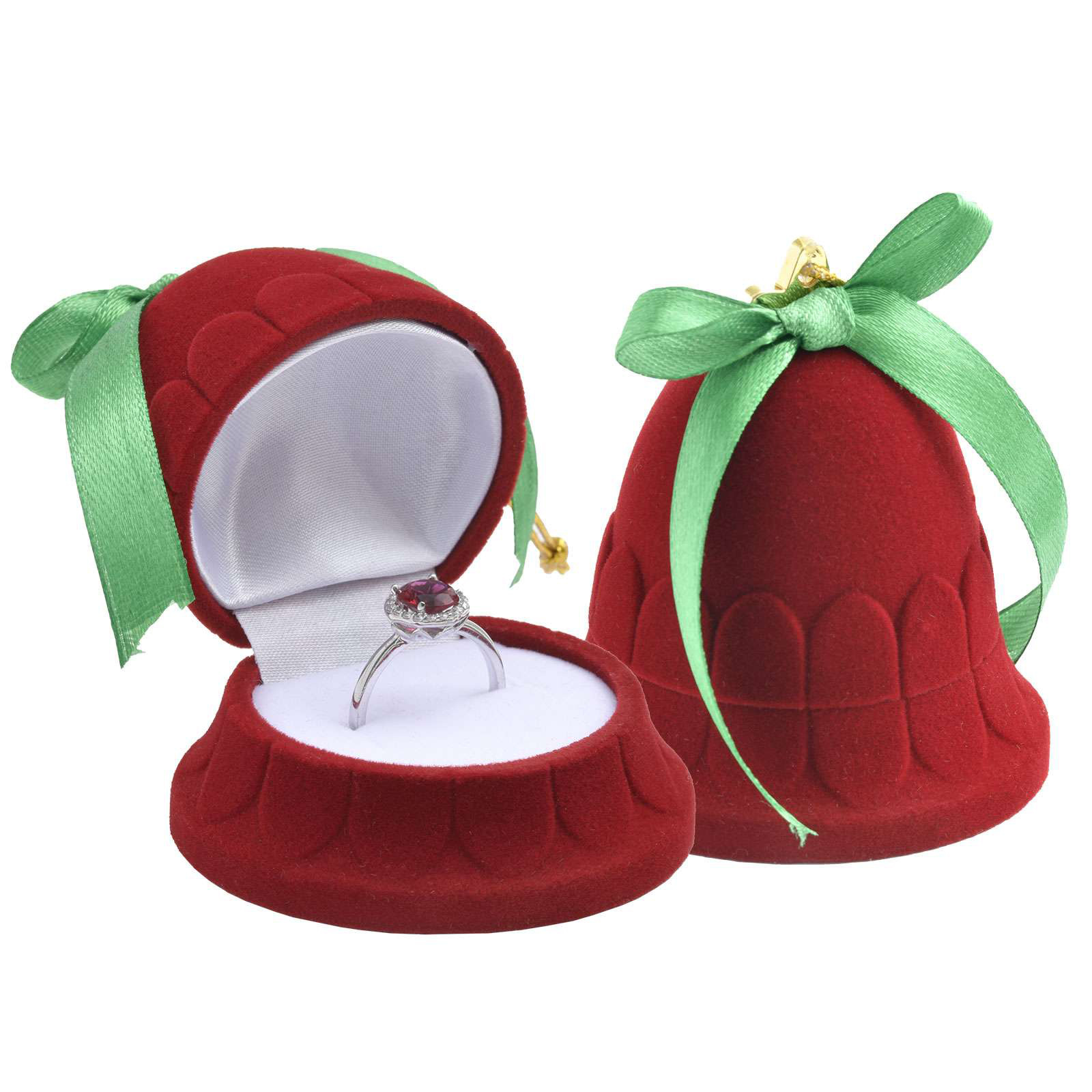 Semišová vánoční dárková krabička ve tvaru zvonečku červené barvy