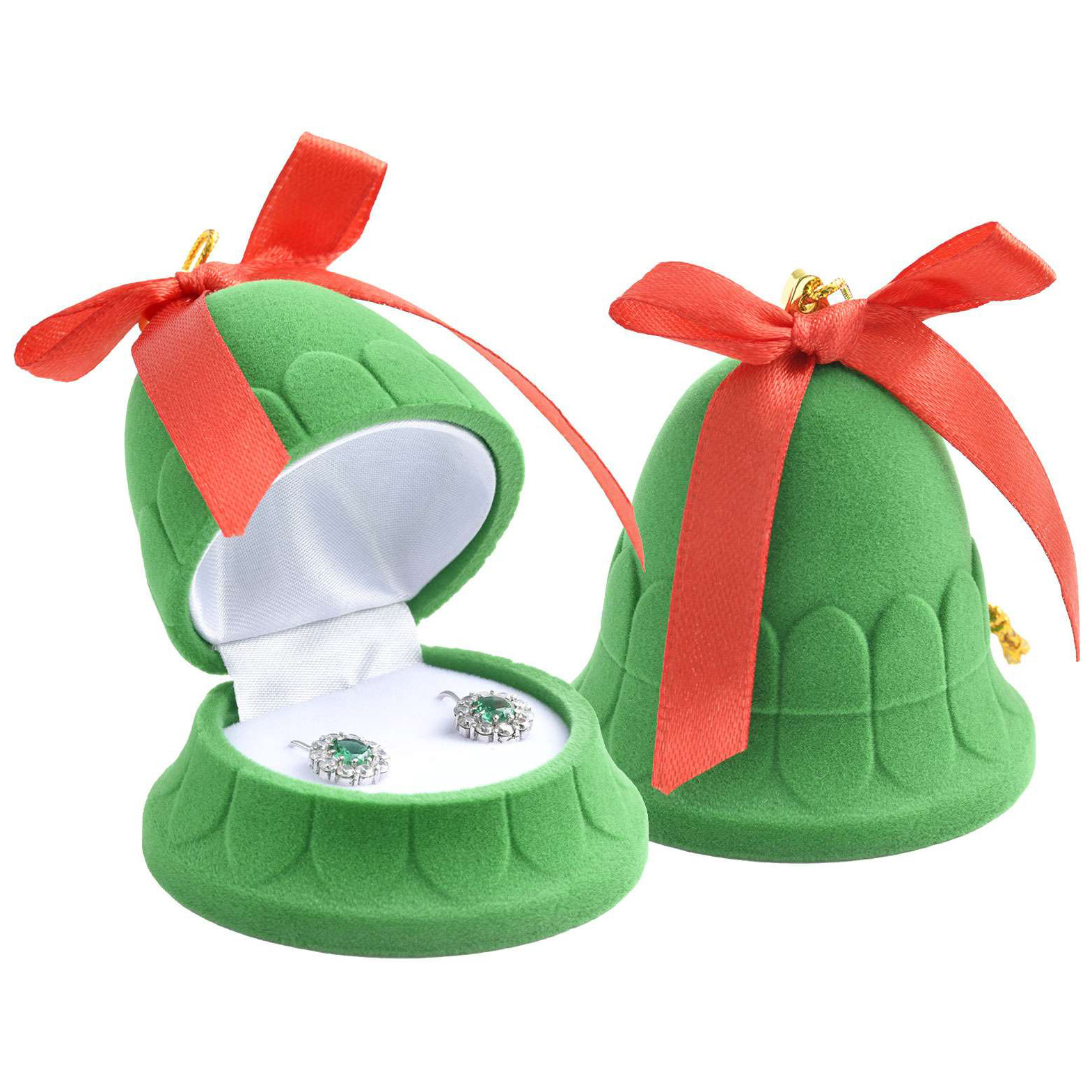Semišová vánoční dárková krabička ve tvaru zvonečku zelené barvy
