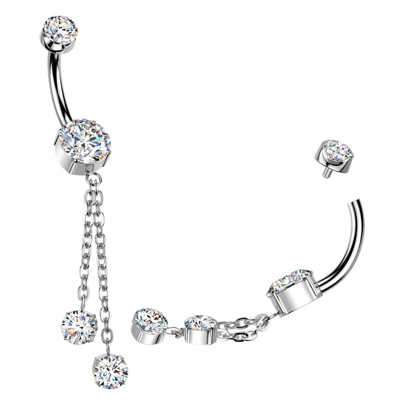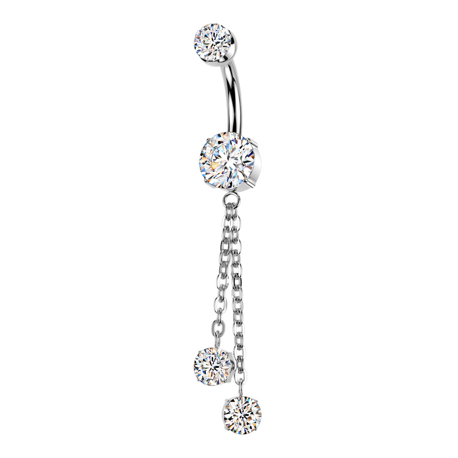 Luxusní titanový piercing do pupíku osazený překrásně třpytivými zirkony čiré barvy