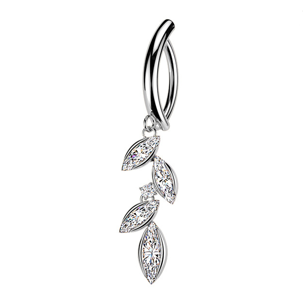 Nudí-li Vás již klasické pupíkovky, pak věříme, že Vás zaujme tento nový typ piercingu do pupíku se štítem a visacím ozdobným prvkem v podobě větvičky dekorované zirkony