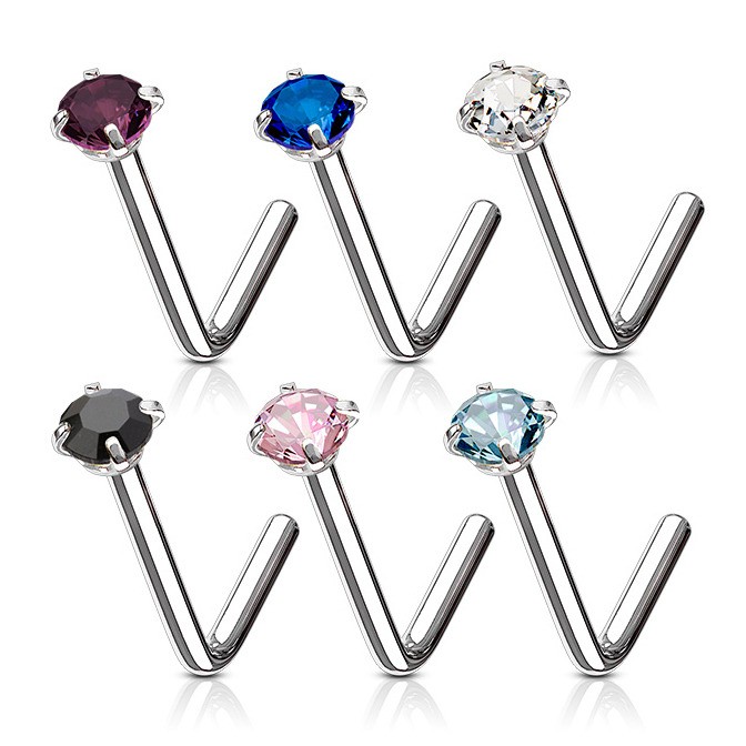 Ocelový piercing do nosu zdobený kamínkem o rozměru 2mm
