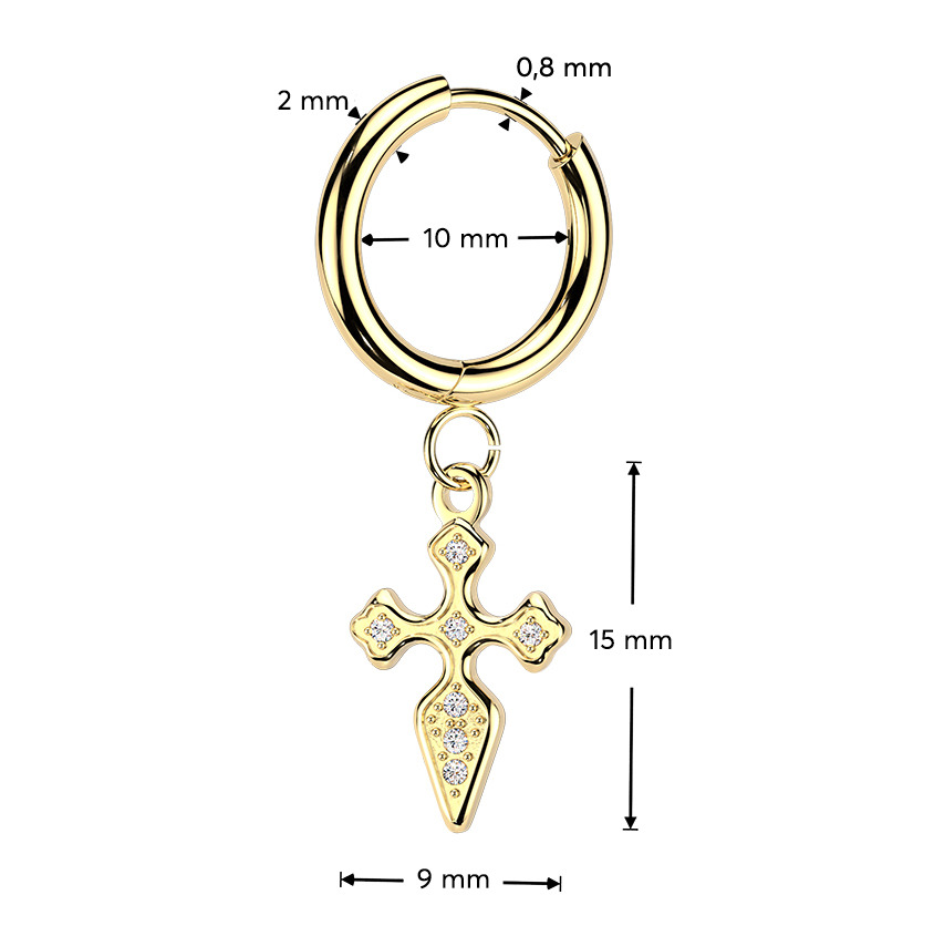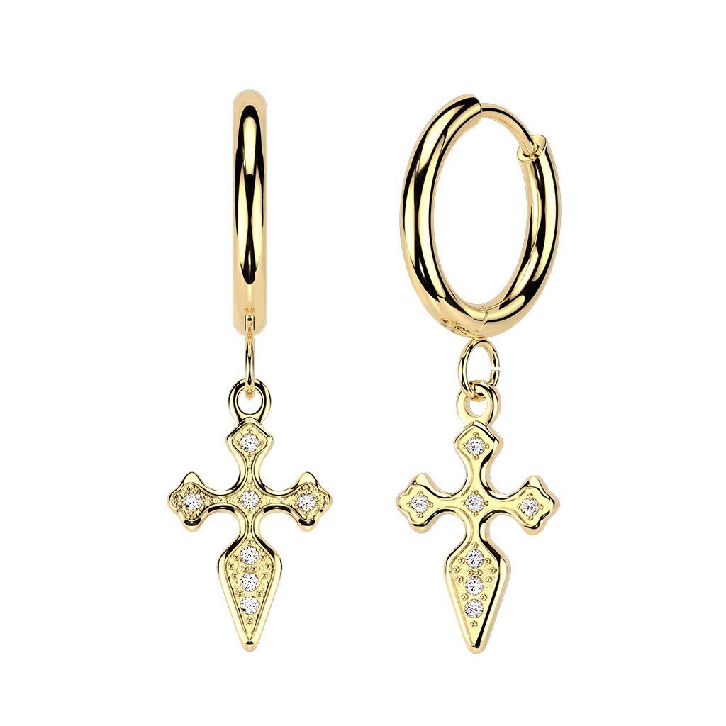 Ocelové náušnice kroužky dekorované zavěšenými křížky se zirkony