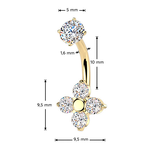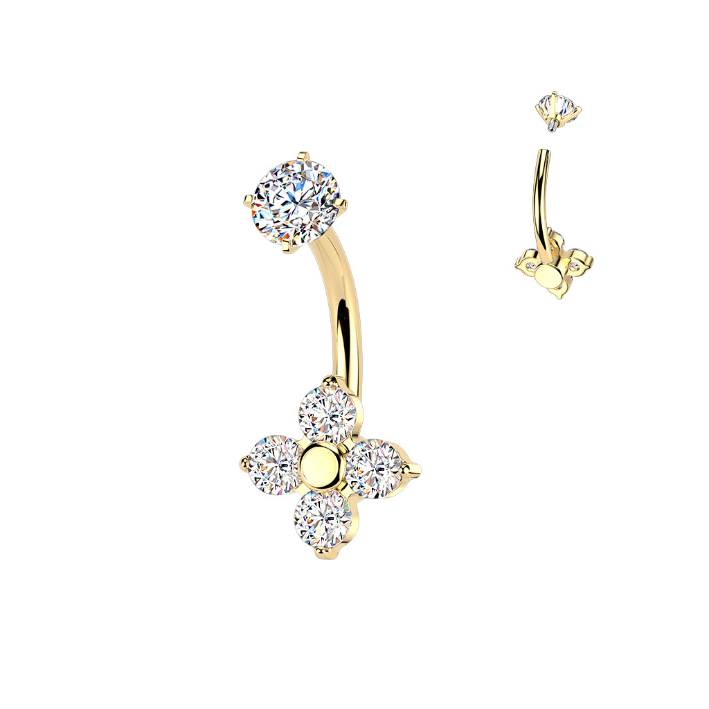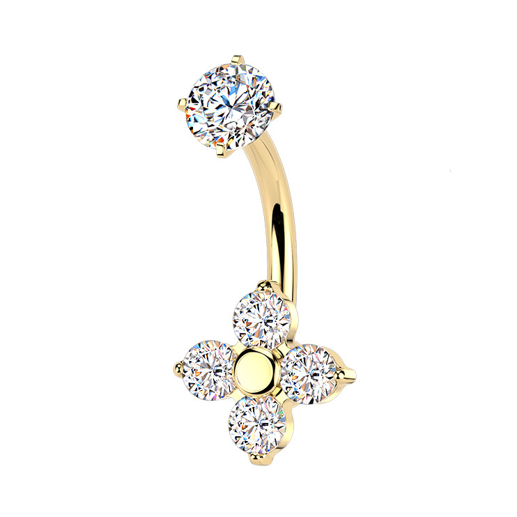 Zlacený ocelový piercing do pupíku kytička