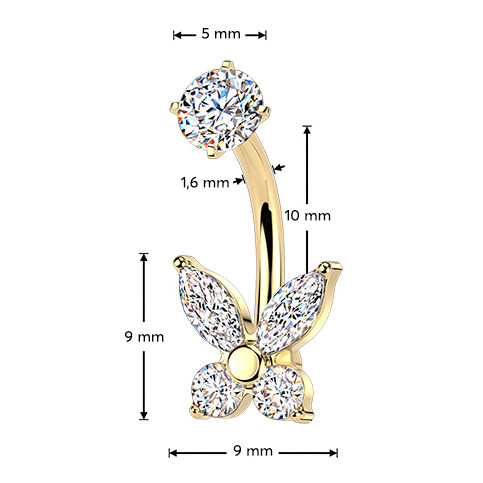 Materiál piercingu: kvalitní chirugická ocel jakosti 316L s povrchovou úpravou v barvě žlutého zlata