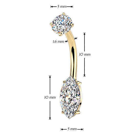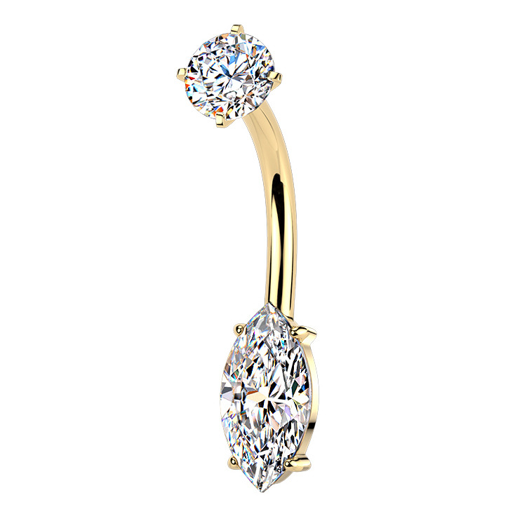 Zlacený piercing do pupíku dekorovaný kubickými zirkony čiré barvy