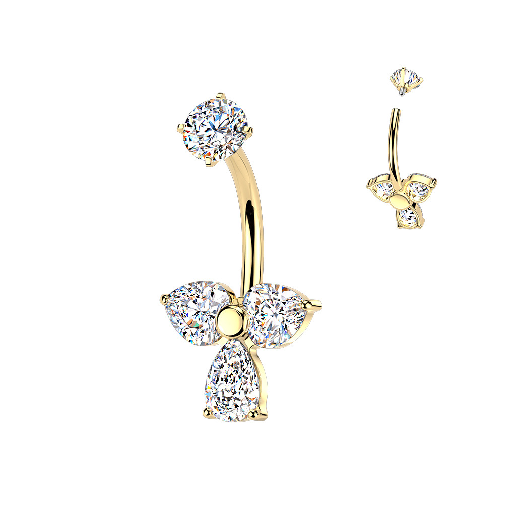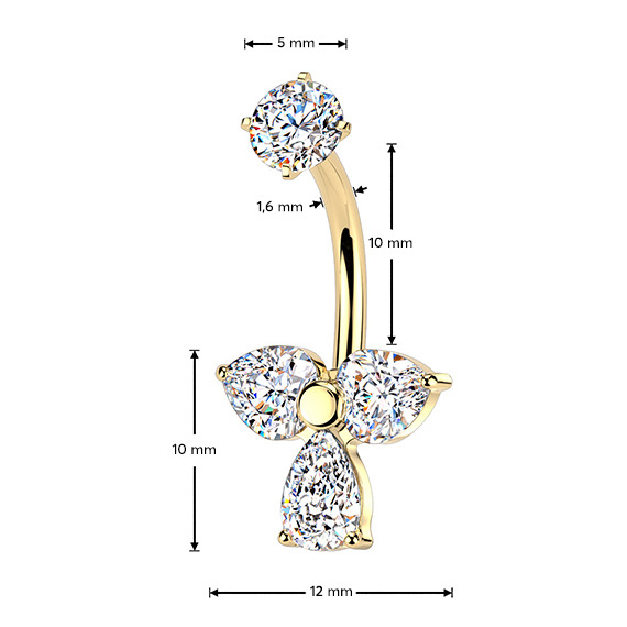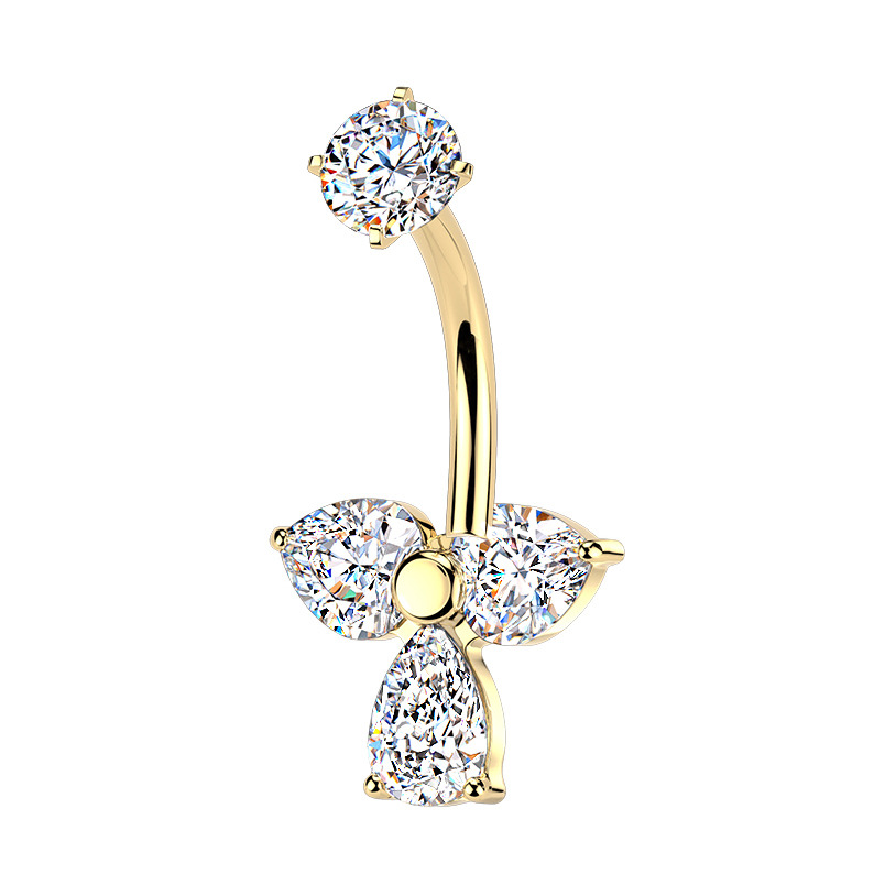 Zlacený piercing do pupíku dekorovaný kubickými zirkony čiré barvy