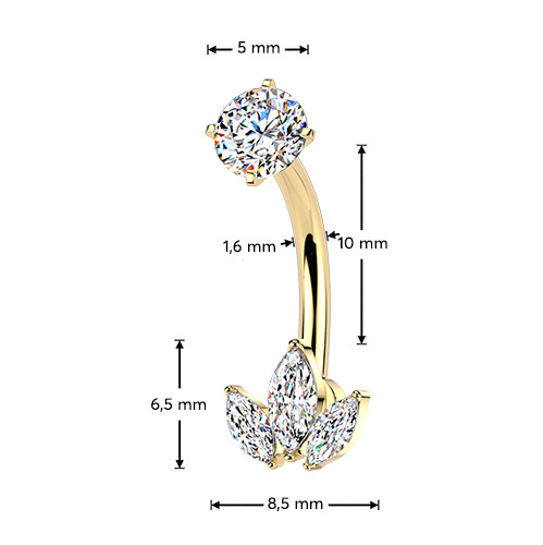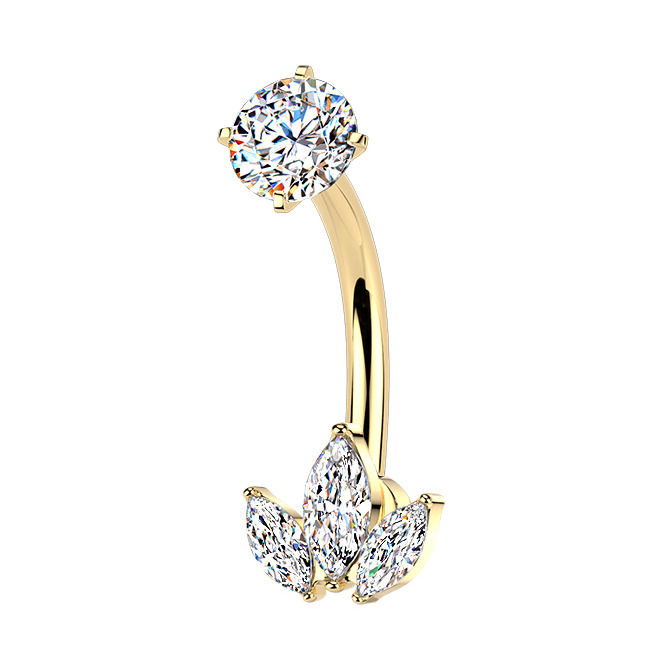 Zlacený ocelový piercing do pupíku se zirkony