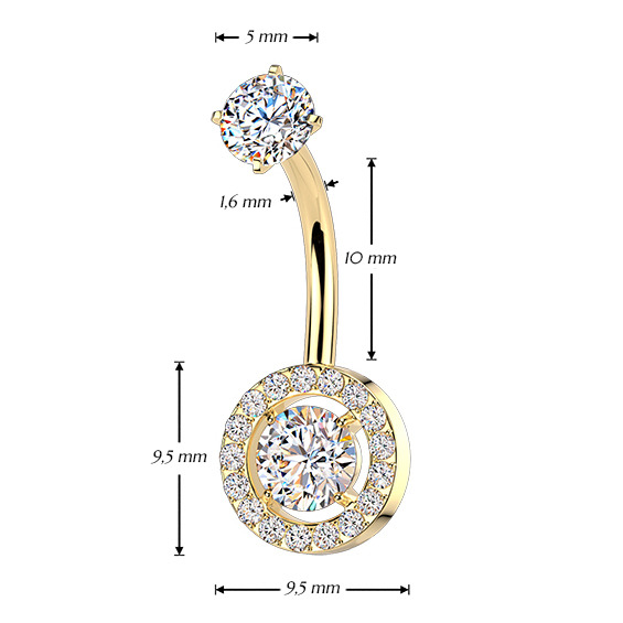 Piercing do pupíku s ozdobnou částí ve tvaru kolečka dekorovaného zirkony