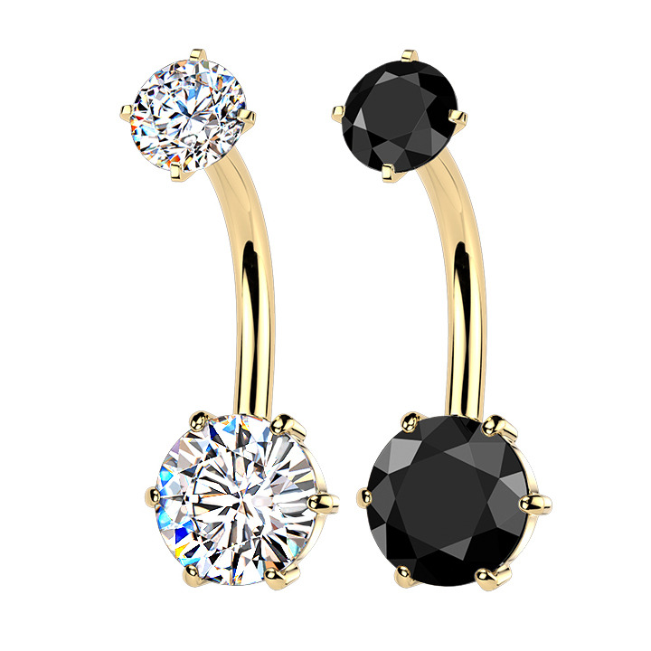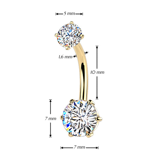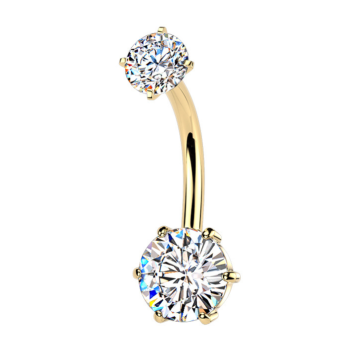 Zlacený piercing do pupíku dekorovaný zirkony