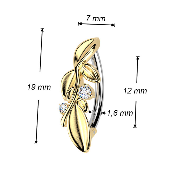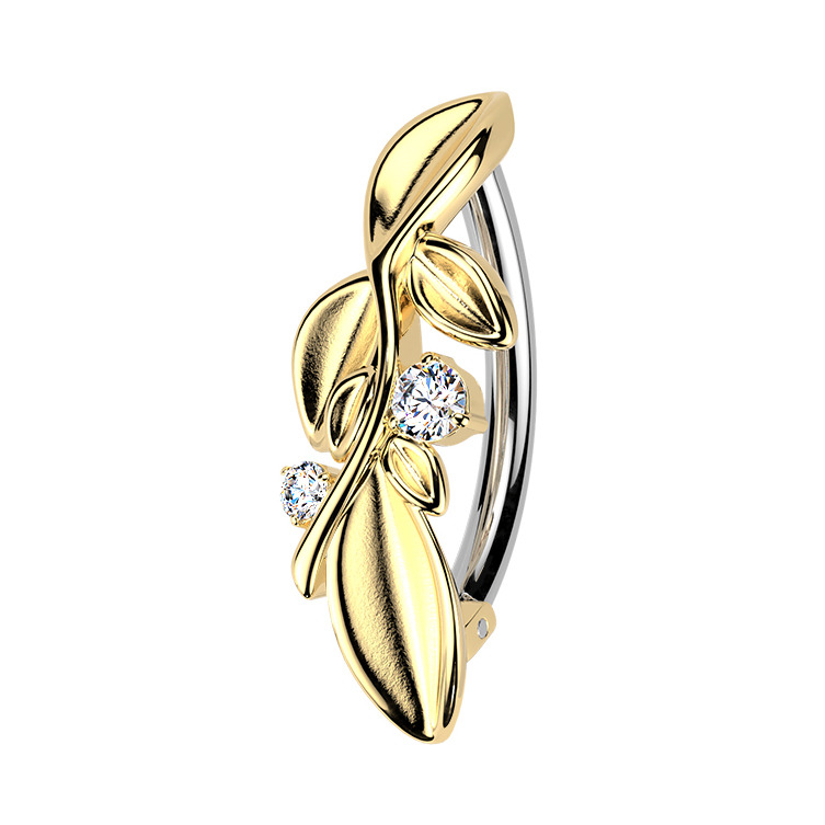 Zlacený piercing do pupíku s lístečky