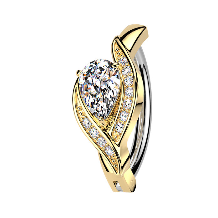Nudí-li Vás již klasické pupíkovky, pak věříme, že Vás zaujme tento nový typ piercingu do pupíku se štítem dekorovaným zirkony