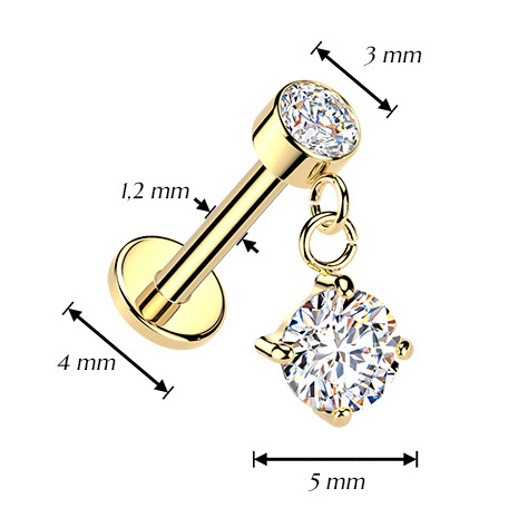 Zlacený piercing do ucha - labreta