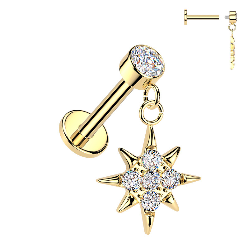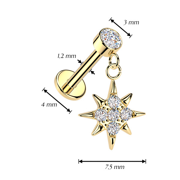 Labreta je vyrobena z kvalitní chirurgické oceli 316L a ozdobná visací část z nezávadné pozlacené bižuterie