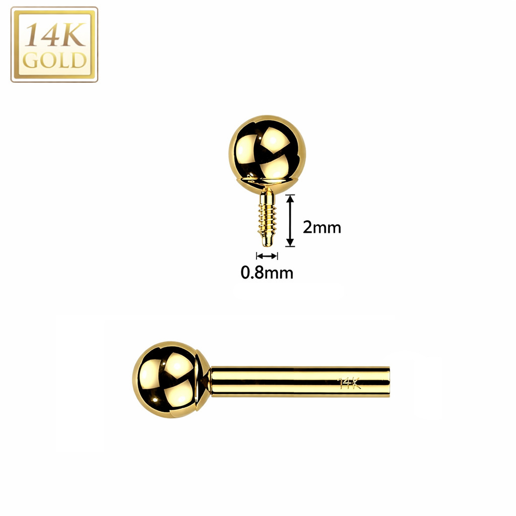 Zlatý piercing cartilage - činka 1,2 x 6 mm, kuličky 3 mm, Au 585/1000