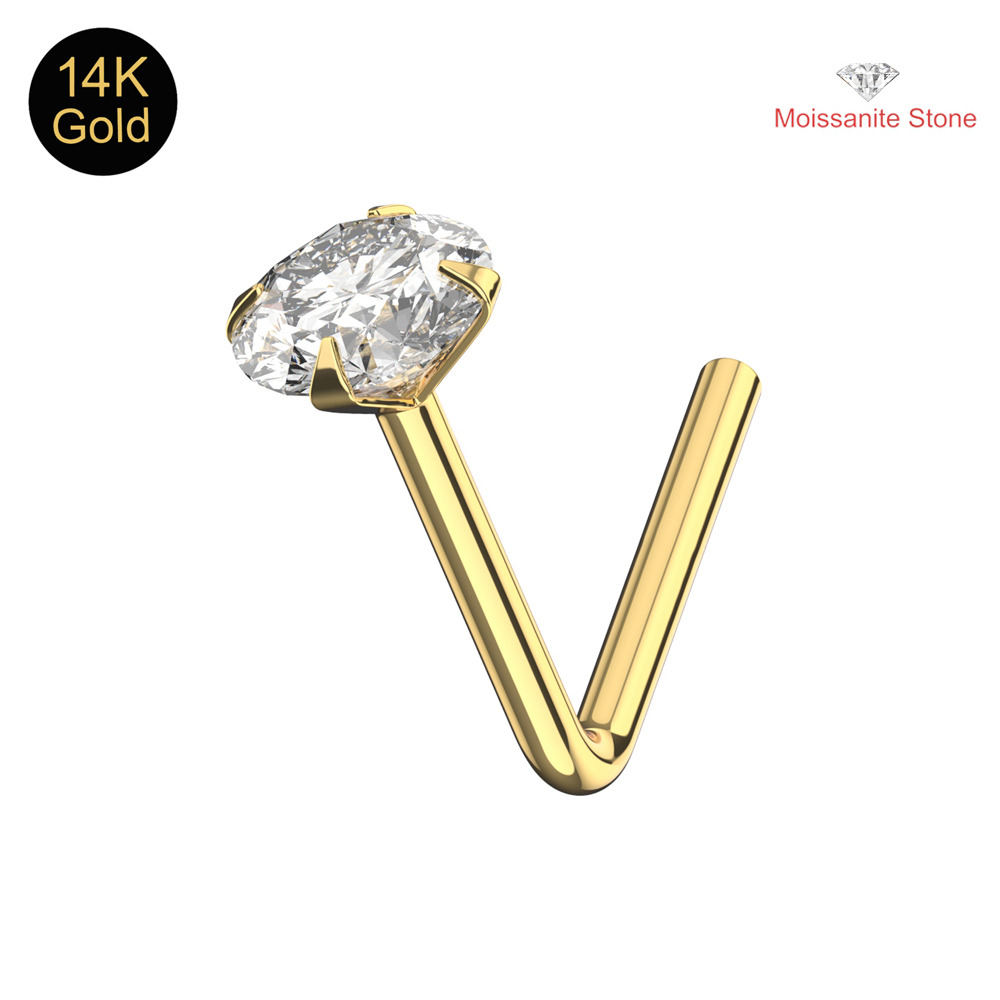 Zlatý piercing do nosu, MOISSANIT, Au 585/1000
