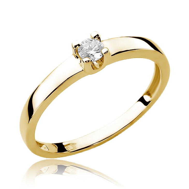 Prsten je vyroben ze 14karátového žlutého zlata. Hmotnost použitého diamantu je 0,10 ct, barvě H a čistotě SI2